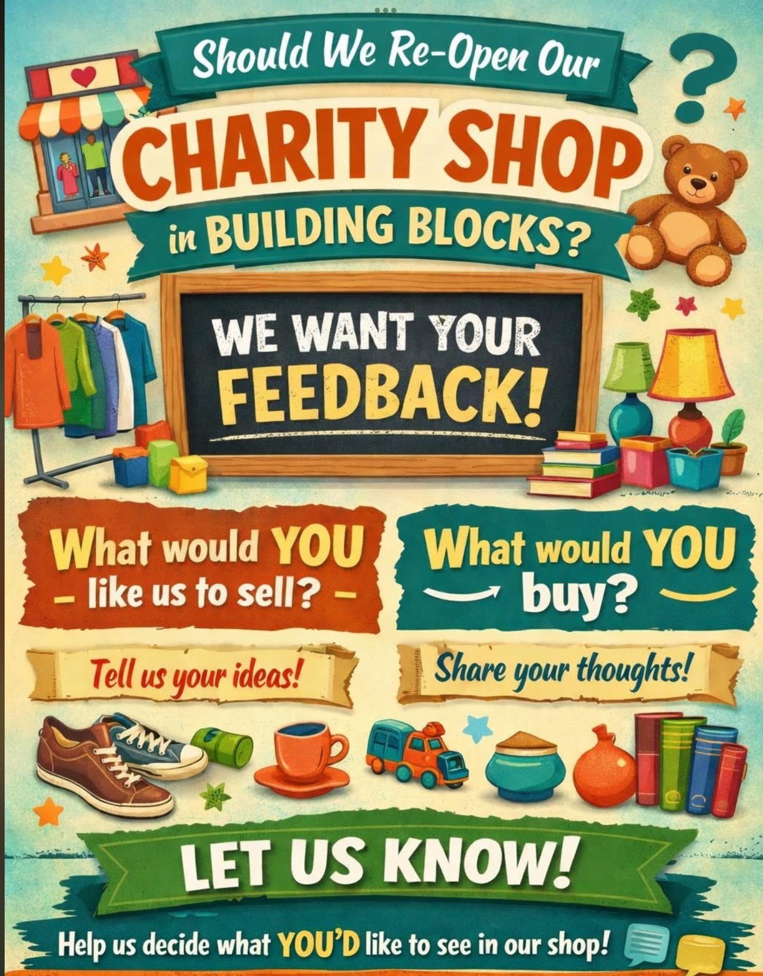 Building Blocks are looking at the possibility of reopening the charity shop but want to hear from you.