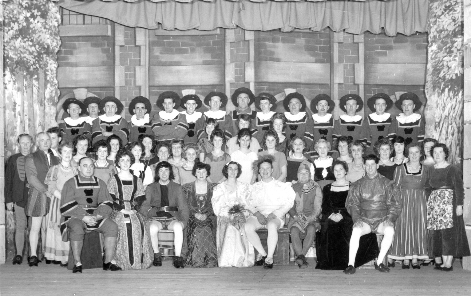 The scenery for the show was constructed by Mr George Minchington (Woodwork teacher at Resolven School) and his helpers, from timber supplied free of charge by the British Aluminium Company and painted by Mr Arthur Morris (Art teacher at Resolven School) and Mr Hugh Taylor with help from other Society members.