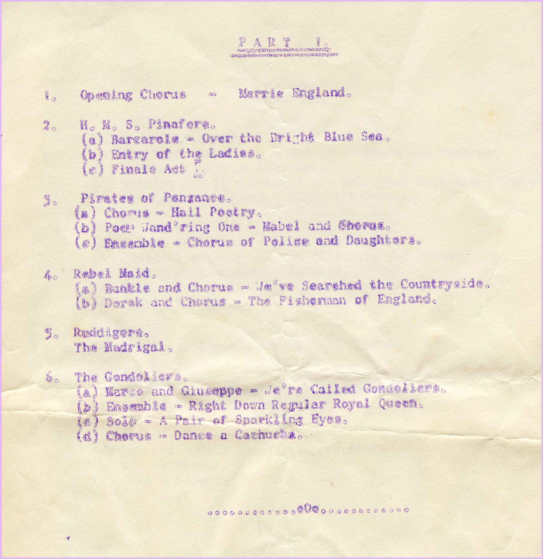 This was a little known French operetta which had been translated to English recently from the French version. This is a light operetta in three acts with slight hints and a ‘nod’ to the work of Gilbert and Sullivan. The operetta has several large chorus numbers.