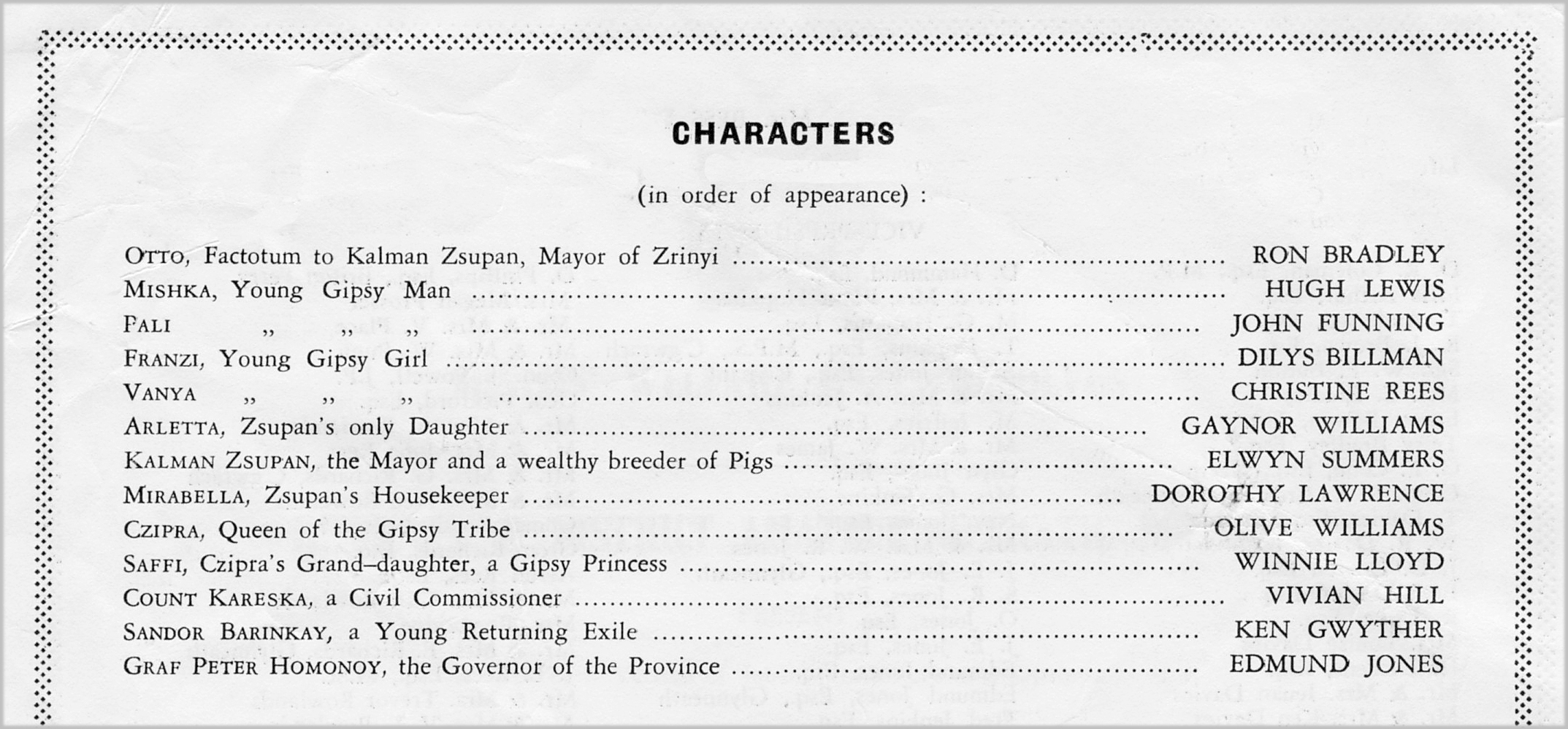 At that time, perhaps because ‘The Gypsy Baron’ was new to the Society, and such a big demanding show, the Community came together to produce one of the most entertaining and happy shows for all who were involved in it, and the Cast and Chorus were one of the largest in number for this production.