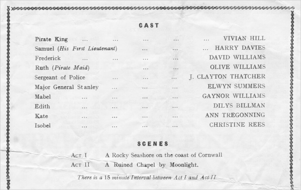 The Pirates of Penzance was performed at the Miner’s Welfare Hall from the 2nd – 5th of November 1966 and was enjoyed and well received, especially the Major-General’s song ‘I Am the Very Model of a Modern Major-General’ which is one of the most famous known ‘patter’ songs in all of the Gilbert & Sullivan Comic Operas.